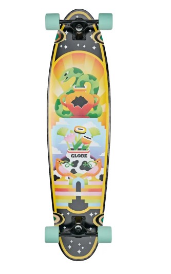 The Archer – Daybreak is a longer wheelbase, flexy 7-ply longboard which bounces through turns, on agile Hi-Rise magnesium Slant trucks and 78a Dragster wheels with graphics from featured artist Jannik Stegen.