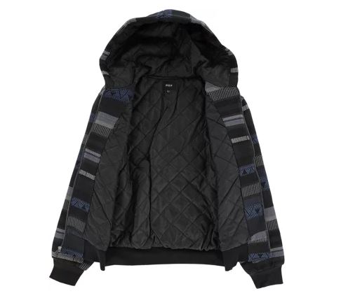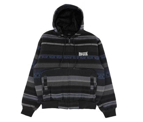 Subverting neo-hippie clichés with broadband craze,  the HUF x Bronze56K Baja Work Jacket mixes earthy serape patterns with classic workwear design.
