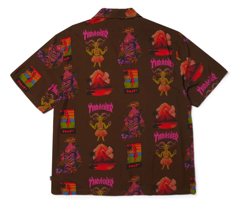 This new HUF x Thrasher Hawaiian Shirt is built with custom souvenir artwork and an island-themed Skate Goat, the HUF x Thrasher Hawaiian shirt animates a resort wear staple with a relaxed fit and all-over print!