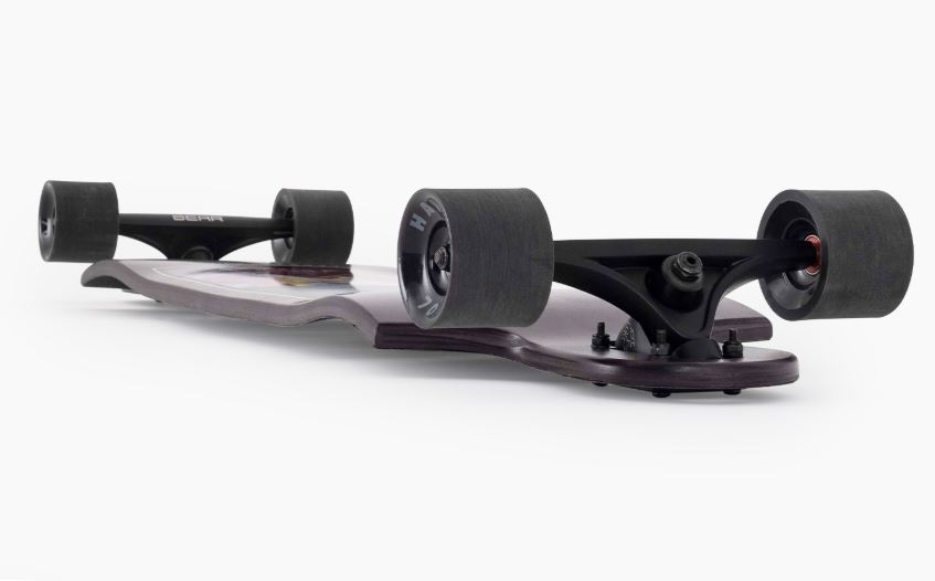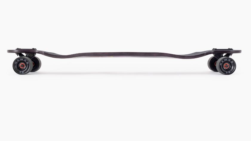 The Switchblade is a double dropped freeride shape that is designed to give you a low, comfortable platform for exploring big hills as well as getting around town as quickly as possible. Deep concave and foot pockets at the drops give you the reference points you need to explore the limits of your freeriding and the 8 ply maple construction keeps the board stiff and under control. The 38 is the smaller of the two sizes Landyachtz offer, measuring 38″ long by 9.8″ wide and offers a little more grip and agility. This board comes set up with 180mm Gen 6 Grizzly trucks and Hawgs wheels for premium freeride capabilities straight out of the box.