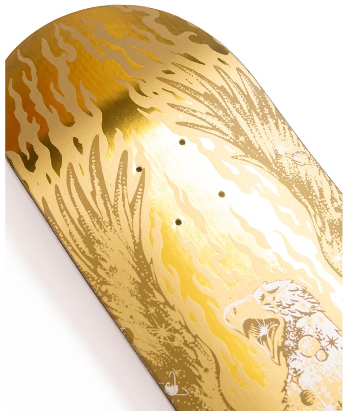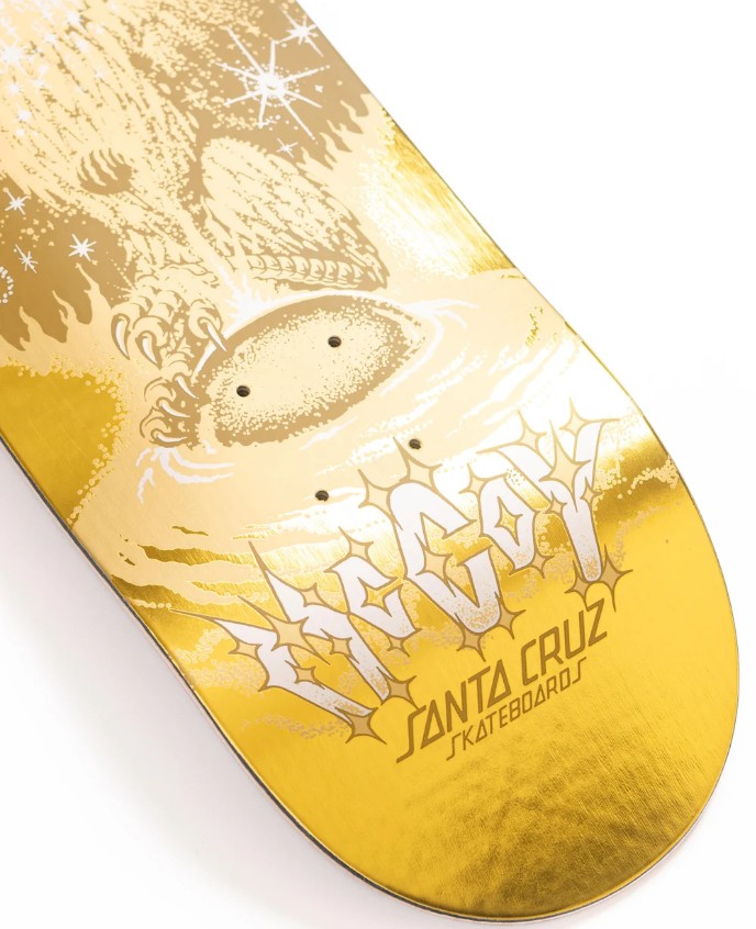 The Santa Cruz Skateboards McCoy Cosmic Eagle VX Twin Pro deck features Maurio’s custom, symmetrical twin shape, VX deck construction, 14.22″ wheelbase and metallic gold McCoy Cosmic Eagle graphics.