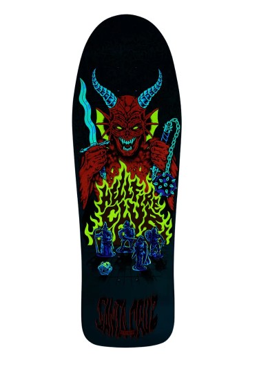 The Santa Cruz Stranger Things Knox Hellfire Pit 10.07in x 31.275in deck features Multi-colour Glow In The Dark Graphics on Tom Knox’s classic Firepit reissue shape.